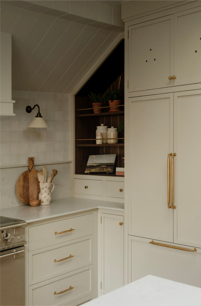 Our portfolio of authentic cabinet hardware includes cabinet knobs, pull handles, T-bars and appliance pulls, which can be perfectly suited with our offering of interior accessories, including shelf brackets, pot rails, mirrors and more. Every piece is hand polished and finished and available in our unique suite of living, lacquered and plated finishes to effortlessly elevate your interiors.